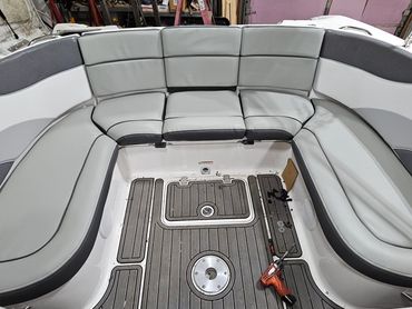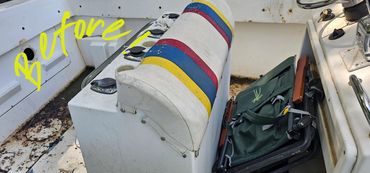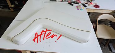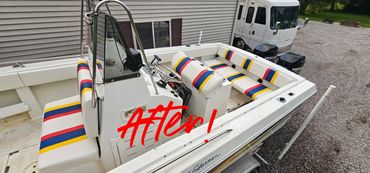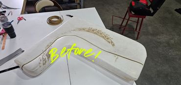 This RV customer wanted the original floral valences reconditioned into modern colors, so this was my recommendation to bring it modern. They provided the new furniture in this instance and we facilitated the change over with that as well.